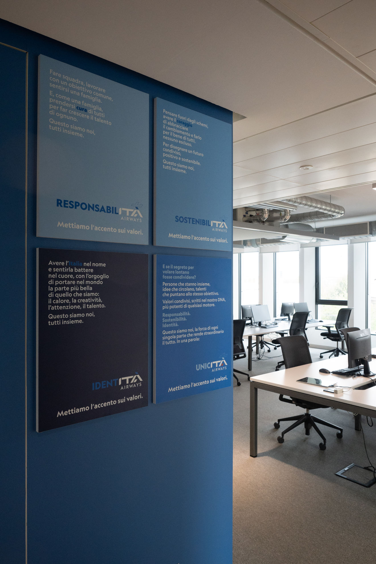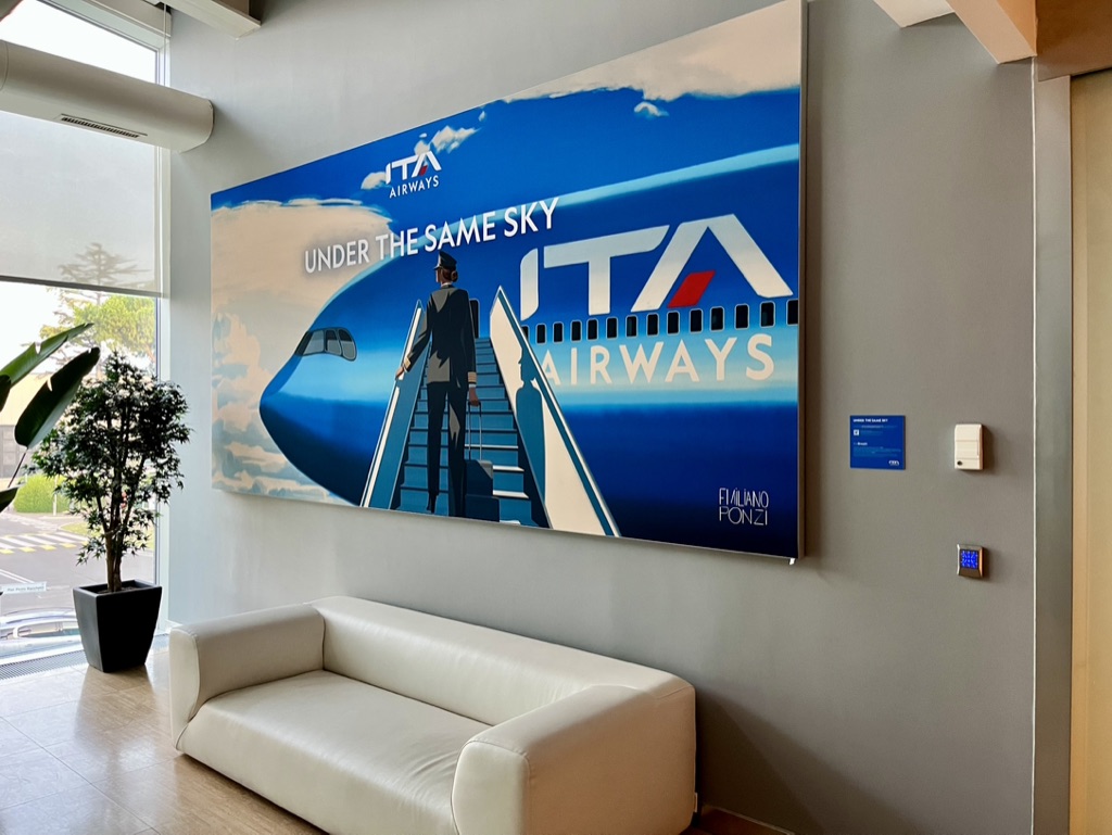 ITA Airways ci ha scelto per sviluppare soluzioni di comunicazione e interventi di riqualificazione degli ambienti, dai propri uffici alle Lounge aeroportuali, fino alla valorizzazione della presenza del brand in tutte le aree degli aeroporti nazionali e internazionali.
