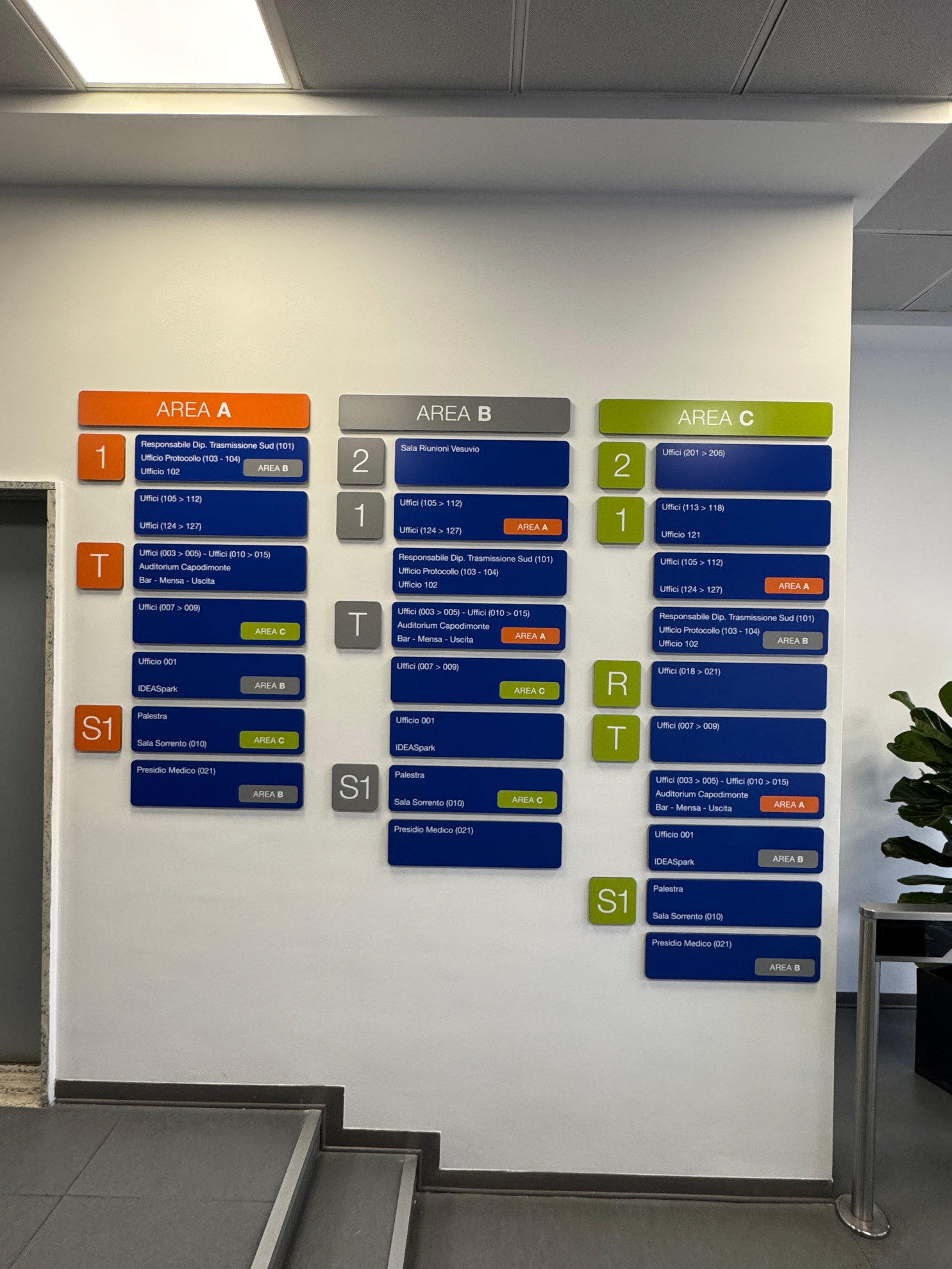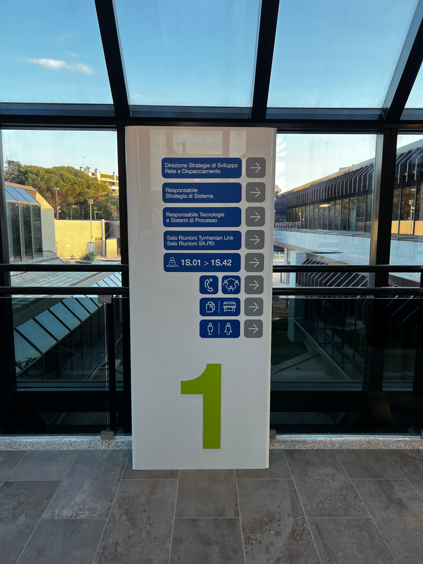 Per Terna curiamo la progettazione e la realizzazione di soluzioni di Physical Branding e Way Finding presso le sedi nazionali e internazionali.